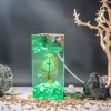 Handmade resin night light, a USB wire for the light stand (USB connector with on/off button), and a remote with 12 color shades and 4 flashing color options are all included in the package.