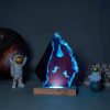 Embark on a cosmic journey every night with the Made to Order Customizable Interstellar Spacecraft Wood Resin Night Light from TV Wood Resin. This enchanting night light captures the breathtaking beauty of the interstellar expanse, featuring a meticulously crafted spacecraft nestled amidst a swirling galaxy of vibrant epoxy resin. Designed to cast a soft, soothing glow, this night light is perfect for adding a touch of celestial wonder to bedrooms, nurseries, or any space yearning for a unique and captivating accent piece. As with all our creations at TV Wood Resin, this interstellar lamp offers you the exciting opportunity to personalize its aesthetic by choosing the specific colors and patterns for the resin galaxy, creating a truly one-of-a-kind window to the cosmos.