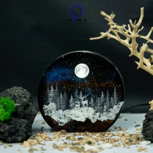 - Material: Natural Wood (Base), Epoxy Resin (Encasing Scene), LED Light